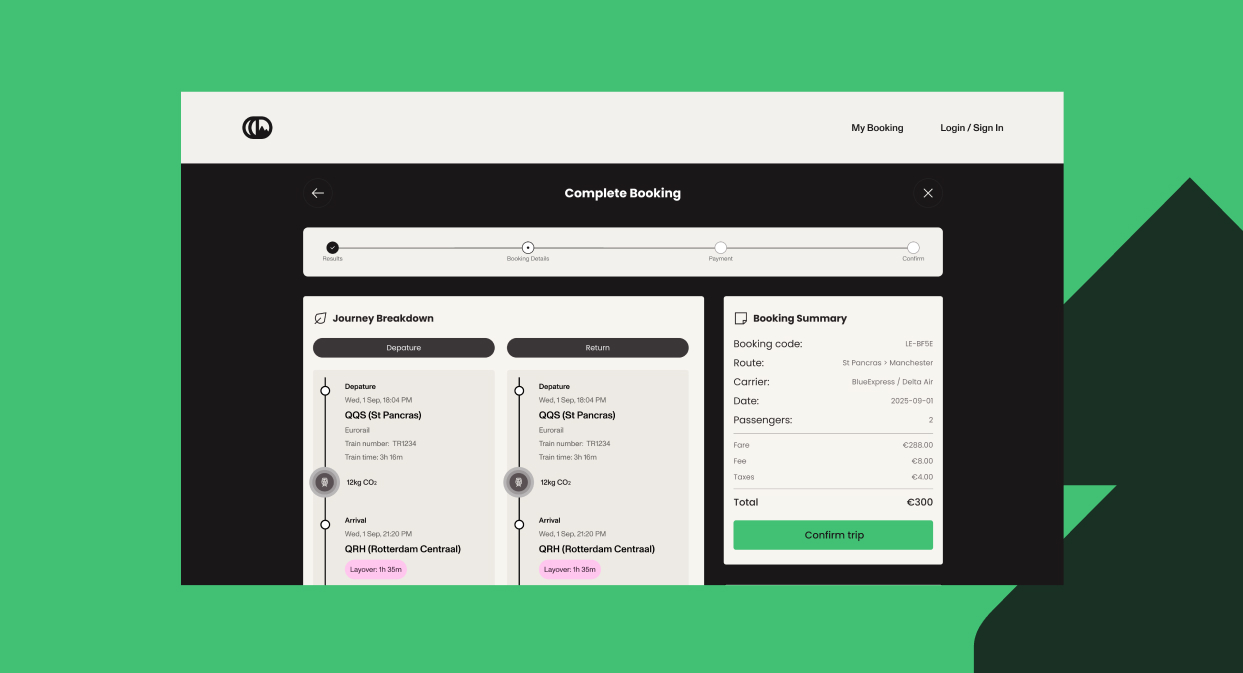 We worked with the founder to build a platform that balances convenience with climate consciousness. The result is a clean, user-friendly tool that empowers travellers to plan trips that align with their values and reduce their footprint.